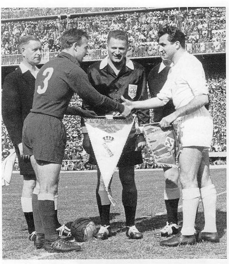 «А что будет, когда на поле выйдут основные игроки», – подумали в штабе Реала, но боязнь продлилась недолго. Лишь в течение первых пятнадцати минут испанцы излишне нервничали. Постепенно осваиваясь, они не только выравняли ситуацию, но и перешли в контрнаступление. Два безупречных фланговых прострела Ди Стефано, которые замкнули Копа и Риаль, вынудили стадион приумолкнуть. Только после перерыва хозяева сумели наладить свои действия, хотя ничья стала слишком малым утешением для англичан.