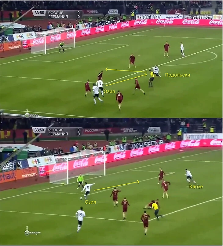 Второй герой – Месут Озил. Во-первых, дисциплинированно прикрывал середину без мяча. Во-вторых, давал динамику в переходах, подстраивался под движение Клозе и обстукивался с Подольским. Вместе с Лукасом Озил нарисовал победную атаку.