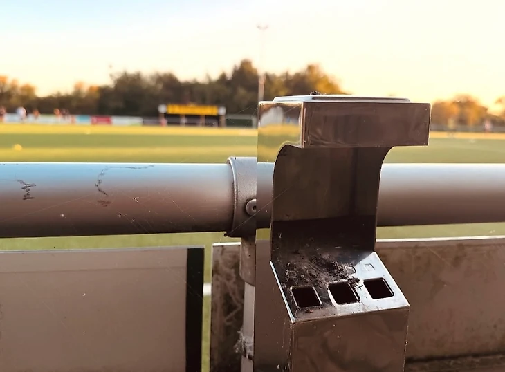 Еще одна трибуна со скамейками расположена за одними воротами, а за другими воротами находится крытая площадка, прилегающая к клубному зданию, турникетам и чайному бару.