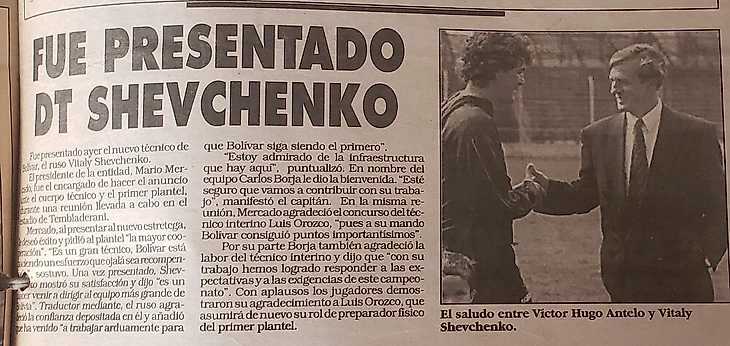 Меркадо представил Шевченко игрокам «Боливара» 30 августа 1992-го. Президент призвал команду во всем прислушиваться к Виталию Викторовичу и добавил: «Он отличный тренер. «Боливар» приложил огромные усилия, чтобы заполучить его. Надеюсь, наши усилия будут вознаграждены».