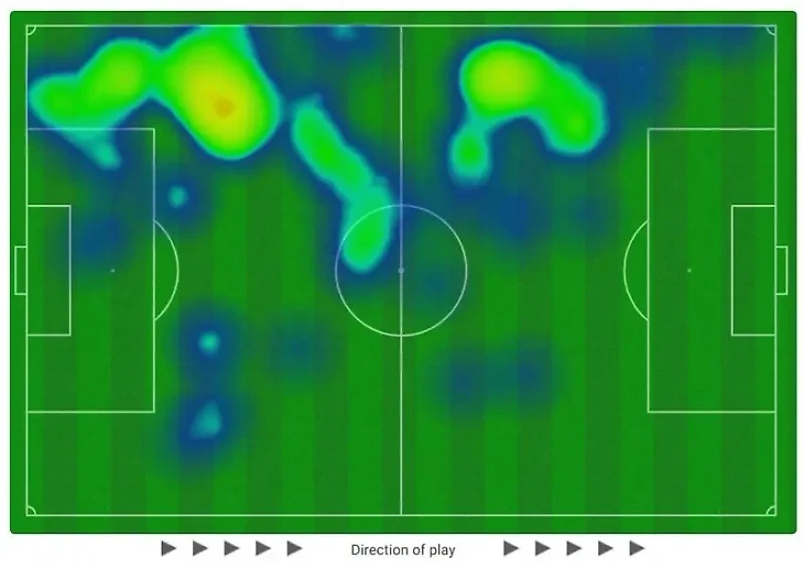 По показателям видно: Кукурелья стал чаще завершать атаки сам, что видно по росту показателей xG, Sh90 и G90, однако реже выступает как созидатель (падение KP90, xA90, xGBuildup90). Хотя влияние на командную игру по метрикам build-up и chain снизилось, индивидуальная результативность улучшилась. Всё-таки Кукурелья оставался игроком обороны и чаще включался в атаку уже на финальной стадии.