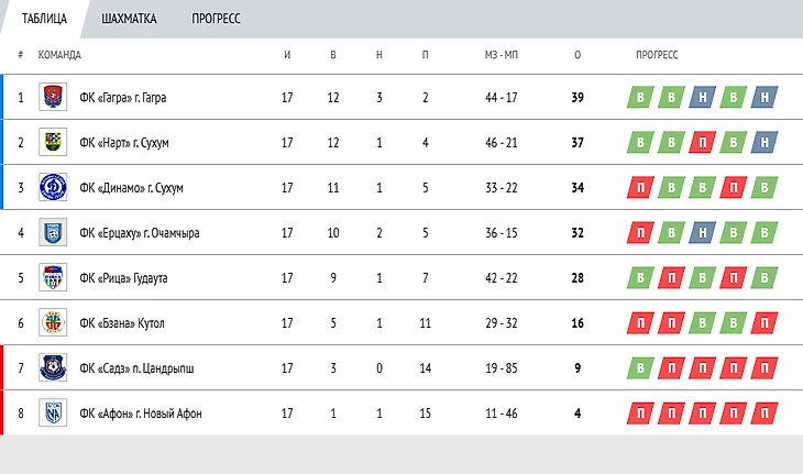 17-й тур Апсны Суперлиги: Лидеры без перемен, интрига за третье место растет