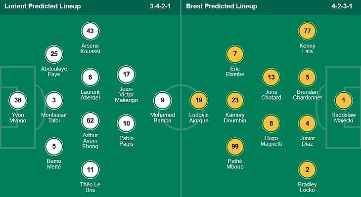 Довольно интересный матч между Лорьяном и Брестом. У гостей в строй вернулись нападающие Балде (НП, 6.5) и Лабо-Ласкари (НП, 5.5), а вот герой 3-х последних туров (3+2 в 3-х играх) Ромен Дель Кастийо (ПЗ, 7) ещё восстанавливается от мышечного повреждения. Мало игрового времени получает Пажи (НП, 6.5), который за 178 минут забил 3 гола. Активен в атаке Тосин (НП, 6.5, 3 гола, 36 ФО), на возврате в центре поля играет камерунец Авом (ПЗ, 5.5, 30 ФО).