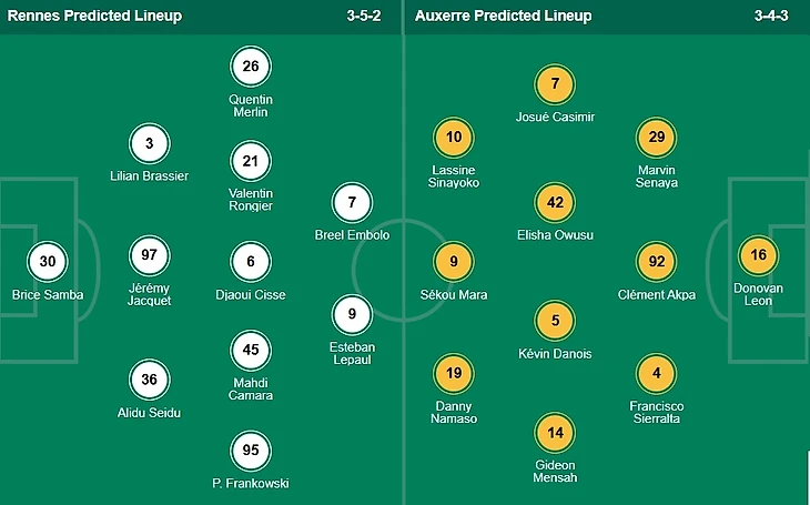 Травмы: Аит Будлал (Ренн, ЗЩ, 4), Диоманде (Осер, ЗЩ, 5.5), Кулибали (Осер, ПЗ, 4.5), Сиве (Осер, ЗЩ, 4)