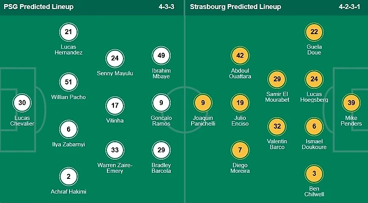 Под вопросом: Дуэ (ПСЖ, ПЗ, 9.5), Маркиньос (ПСЖ, ЗЩ, 6), Барколя (ПСЖ, ПЗ, 10), Ойеделе (Страсбур, ПЗ, 5)