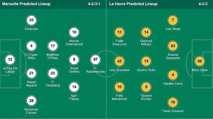 Под вопросом: Кондогбиа (Марсель, ПЗ, 5), Гуири (Марсель, НП, 9.5), Траоре (Марсель, ПЗ, 7.5), Саматта (Гавр, НП, 6.5), Делен (Гавр, ЗЩ, 4.5), Хадра (Гавр, ПЗ, 4.5), Загаду (Гавр, ЗЩ, 4).