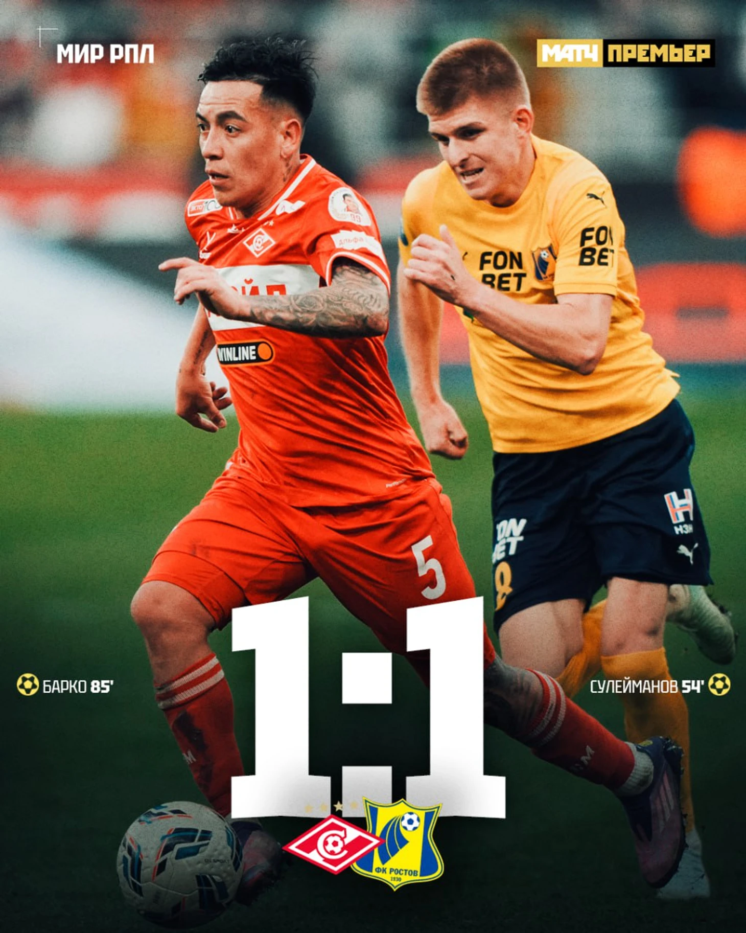 «Спартак» все-таки смог уйти от поражения от «Ростова» - 1:1.