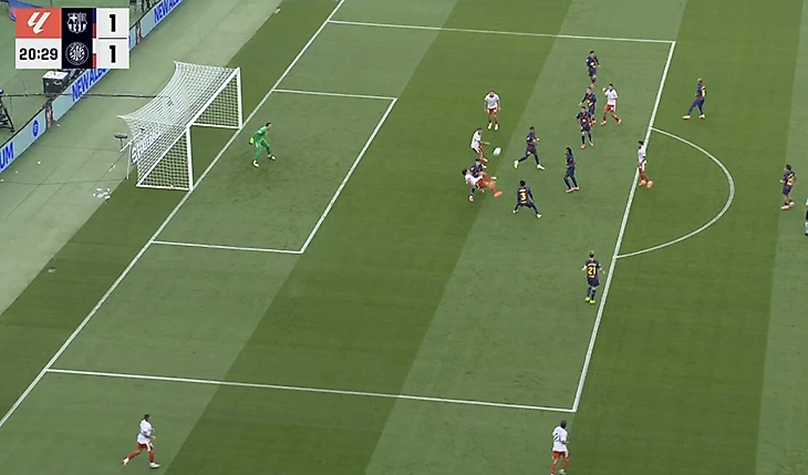 Поначалу придавили фирменным прессингом и впечатлили подвижностью в атаке. Фернандес открывался под пасы и постоянно отыгрывался с партнерами. Уже на 13-й минуте справедливо повели: финт Жюля Кунде, пас Ямаля на Педри – а он перехитрил двоих соперников и мастерски закатил.