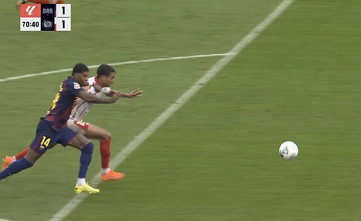 До перерыва «Жирона» создала еще три выхода один на один. «Барсе» повезло, что ни одного не реализовали: ни форвард Владислав Ванат, ни вингер Порту – он попал в штангу.