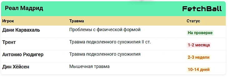 «Реал Мадрид» справился немного лучше, но уже был вынужден преодолеть небольшой кризис на правом фланге обороны, так как физическая форма Дани Карвахаля пострадала, новоприбывший Трент Александер-Арнольд уже получил травму подколенного сухожилия второй степени.