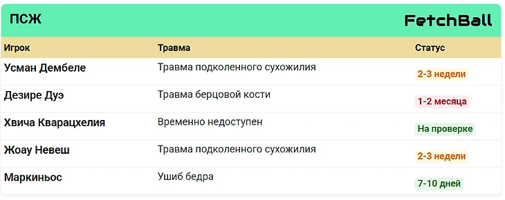 ПСЖ сыграл с «Барселоной» в этом месяце в матче, который должен был стать грандиозным событием Лиги чемпионов, однако отсутствие пяти игроков, которые начинали финальный матч с победой 5:0 над «Интером» в мае — Усмана Дембеле, Дезире Дуэ, Хвичи Кварацхелия, Жоау Невеша и Маркиньоса — несколько омрачило событие.