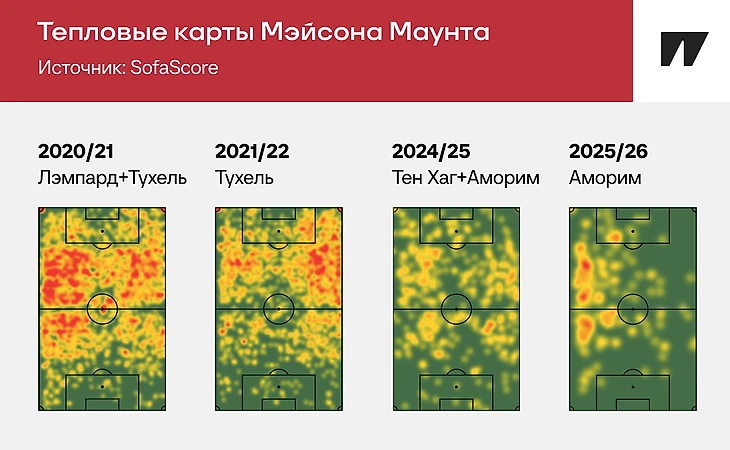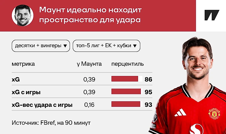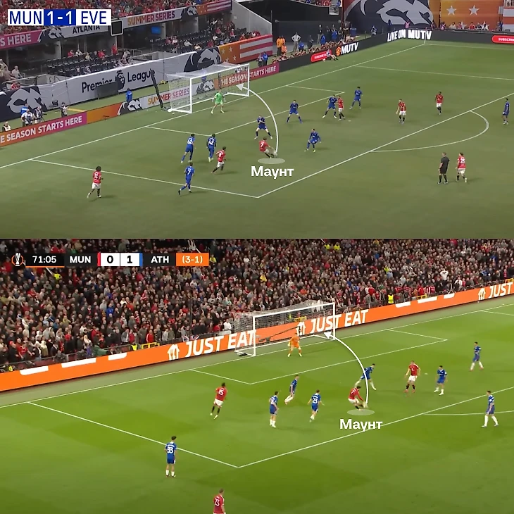 Среди причин большего вовлечения Маунта не только отсутствие больших повреждений (за последние 7 месяцев пропустил только две игры), но и максимально конкретная роль. Прайм-версия Мэйсона играла в полуфлангах, но преимущественно справа. Аморим вернул Маунта к воротам соперника, но теперь Мэйс атакует слева.
