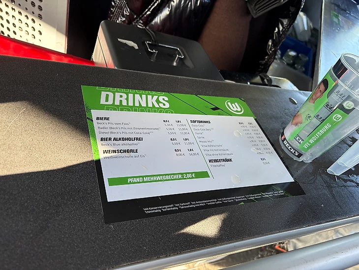 Все напитки наливают в многоразовые брендированные стаканы. Залог за стакан – 2 евро, после матча можно его вернуть или оставить себе. Я решил оставить себе как сувенир.