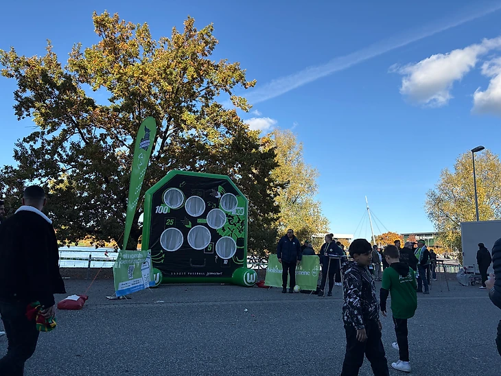Я бы не сказал, что перед стадионом был фестиваль развлечений, скорее какие-то обыденные аттракционы, вроде измерения силы удара по мячу и испытания на точность.