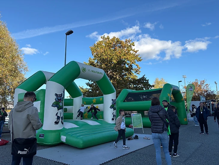 К стадиону можно пройти через ландшафтный парк, примыкающий к заводу Volkswagen. На территории есть множество выставочных автомобильных павильонов, музей, различные кафе и детские площадки. Прогуляться там одно удовольствие, разовый вход однако стоит 20 евро.