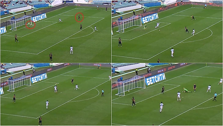Наибольшее внимание получил момент в середине первого тайма, когда Александр Солдатенков сильно отправил мяч вратарю. Он отлетел от Дюпина к Матео Кассьерре, который отбросил Венделу. Бразилец забил с близкого расстояния.