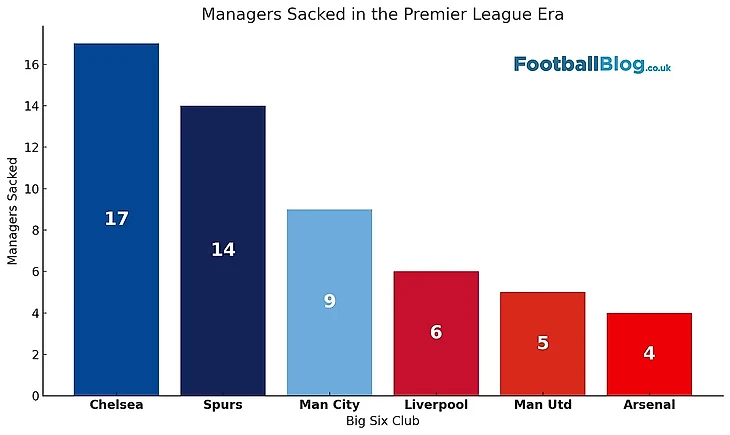 А что по количеству тренеров? «Челси» уволил целых семнадцать человек, тогда как за аналогичный период у «шпор» было четырнадцать.
