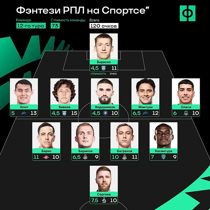 Это сборная 12-го тура фэнтези-турнира РПЛ: