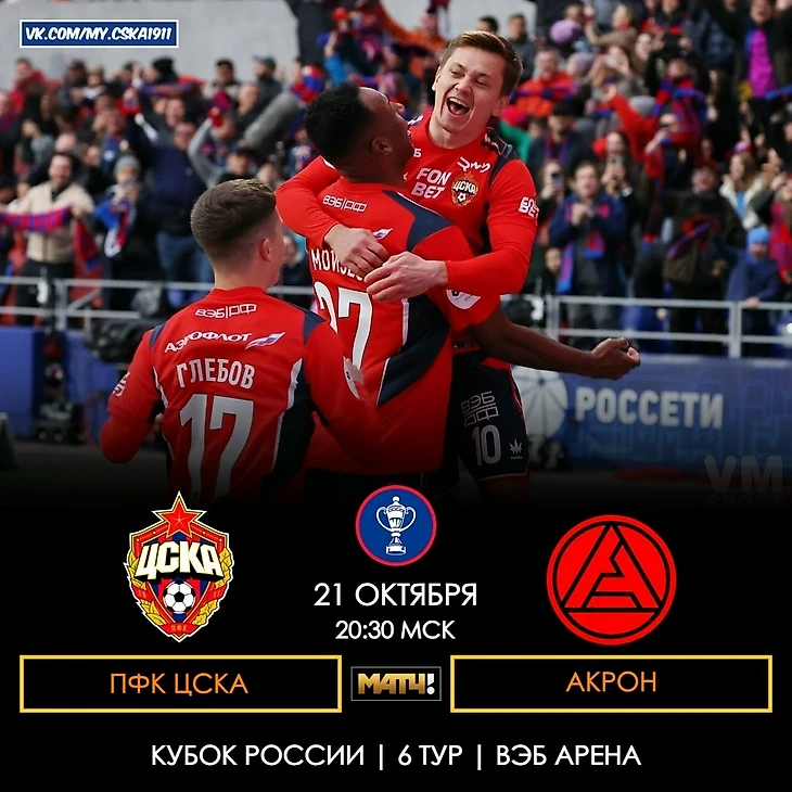 ЦСКА – «Акрон». Онлайн-трансляция начнется в 20:30