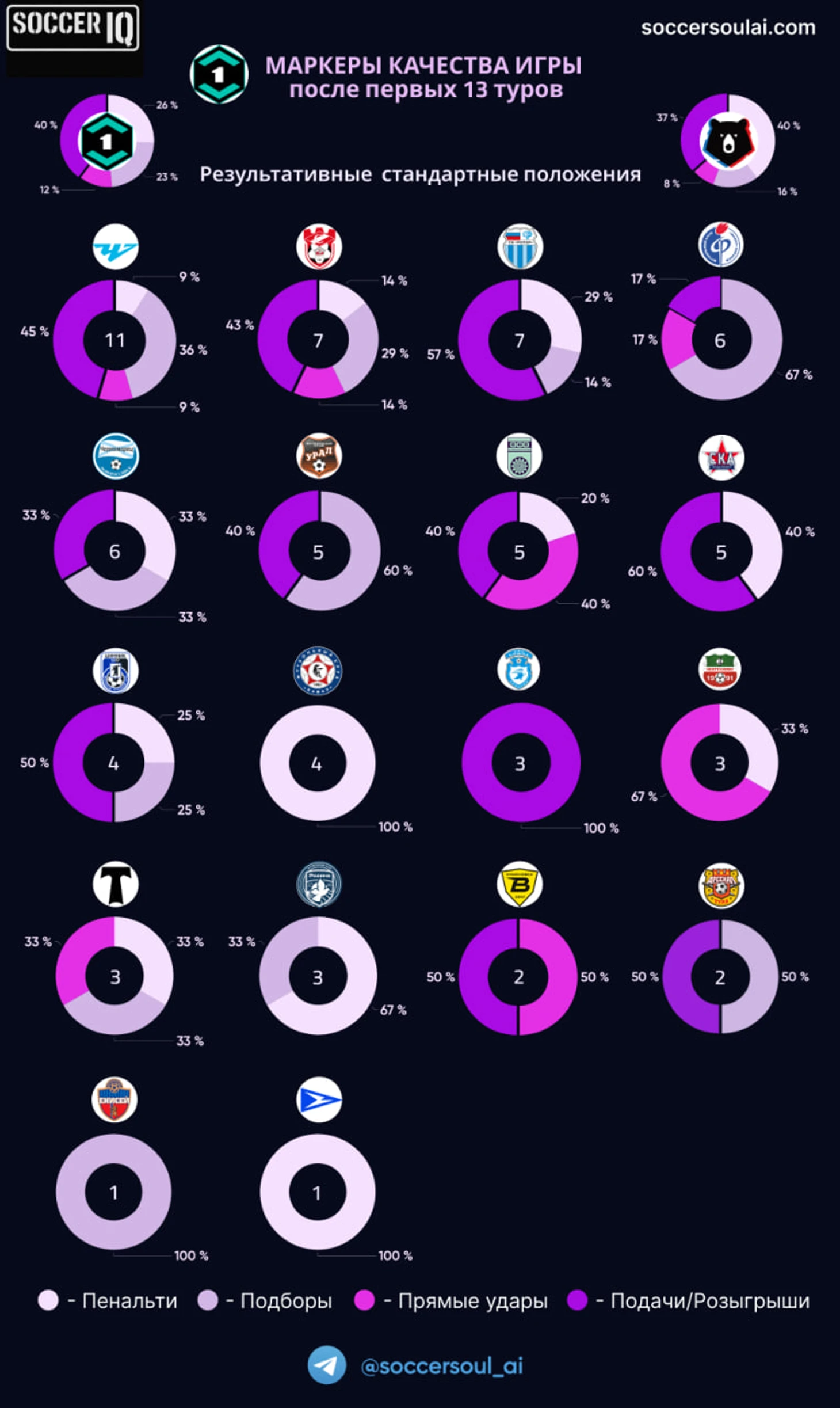 Не так давно в своём Телеграм-канале мы сравнивали обе лиги, после 11 матчей. Предметом сравнения как раз и были маркеры качества игры, а также результативные стандартные положения.