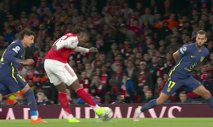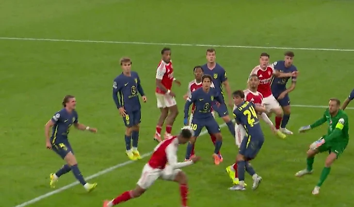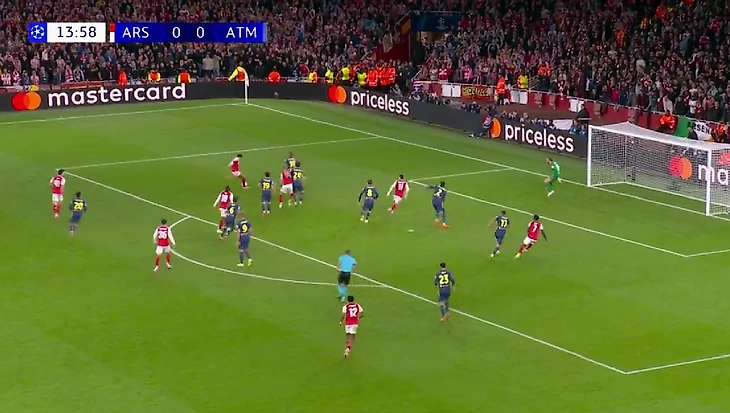 Можно сказать, что начало задало сценарий всему матчу: «Арсенал» играл первым номером, создавал моменты, а «Атлетико» старался найти счастье в контратаках. На 14-й минуте случился следующий момент «канониров», когда мяч после серии передач оказался в ногах у Майлса Льюиса-Скелли, но англичанин не попал в створ.