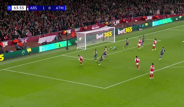 Впрочем, «Арсенал» такое развитие событий нисколько не смутило, и «канониры» тут же забрали инициативу обратно в свои ноги. На 53-й минуте в результате комбинации момент для удара появился у Виктора Дьокереша, однако Облак сделал с ним то же самое, что и с Сака в первом тайме — сблизился и не дал забить.