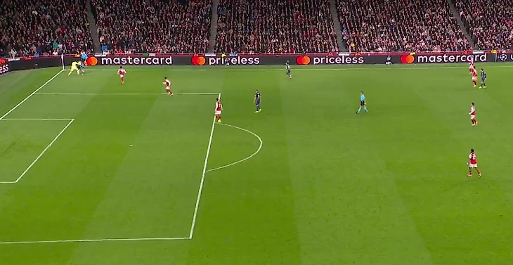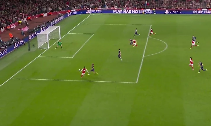 Спустя ещё 5 минут Эзе длинной передачей вывел Букайо Сака 1 на 1 с Облаком, но словенский кипер успел выйти из ворот и достаточно сблизился с вингером «Арсенала», чтобы не дать тому отправить мяч в створ.
