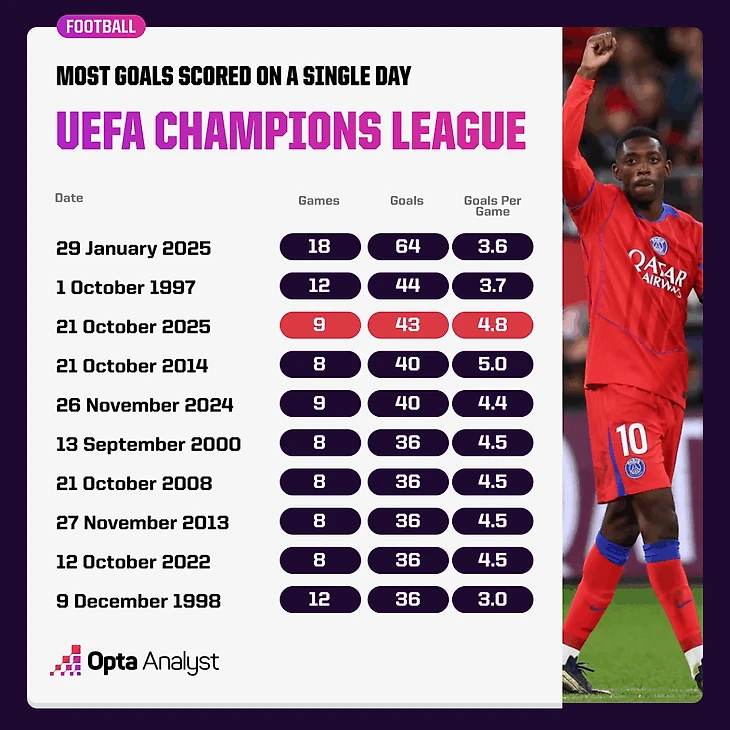 43 гола за 9 игр. Голевой шторм в Лиге Чемпионов во вторник: есть ли ему равные в истории?