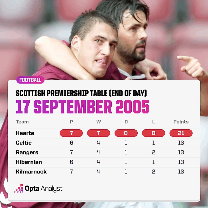 В сезоне 2005/06 «Хартс» стартовал ещё более впечатляюще, чем в нынешнем: команда Берли выиграла первые 8 матчей в лиге и не знала поражений в первых 12 турах (10 побед, 2 ничьих).