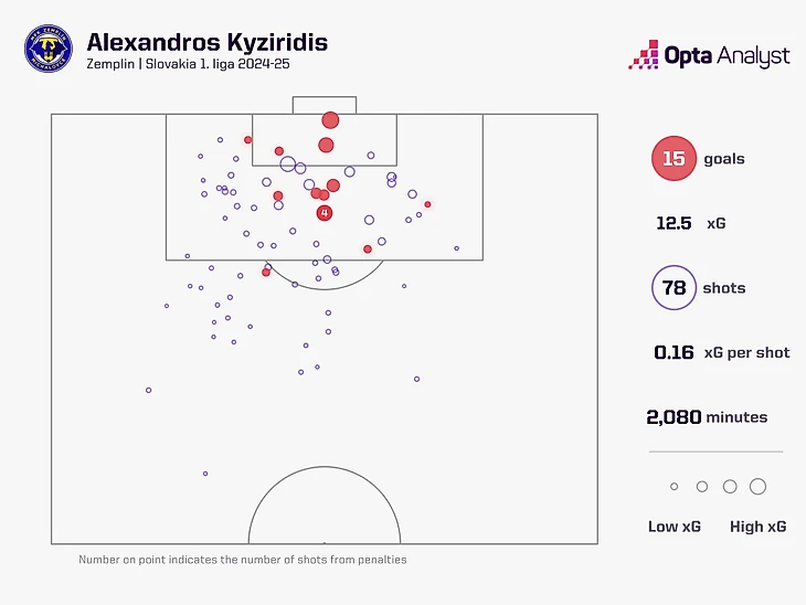 Особенно примечательно, что в прошлом сезоне в чемпионате Словакии Кизиридис забил 15 голов в 26 матчах за «Земплин Михаловце», реализовав 19,2% своих ударов (78 попыток). Это демонстрирует его эффективность еще до перехода в Шотландию.