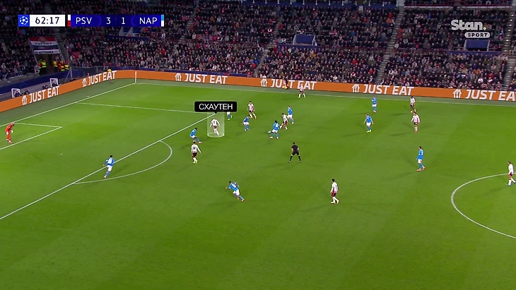 ПСВ просто не давал «Наполи» забрать мяч и начать атаковать. За 22 минуты при 3:1 в равных составах «Наполи» выжал из себя всего четыре передачи на чужой трети поля.