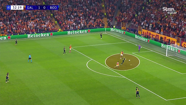 В прошлом туре с прессингом «Галатасарая» не справился «Ливерпуль». В этом они победили «Буде» 3:1, забив все три мяча вследствие высокого давления. Охотясь за мячом, Юнус Акгюн и Виктор Осихмен регулярно выдавали вот такие эпизоды: