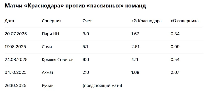 Во всех матчах, кроме игры с «Ахматом», «Краснодар» значительно превосходил соперников по xG