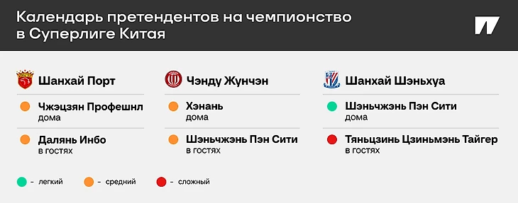 ● Теперь «Шэньхуа» вообще нельзя ошибаться: любая осечка может выкинуть из чемпионской гонки. А вот от конкурентов они очень нужны – устроит, если «Порт» и «Чэнду» проиграют хотя бы один из своих матчей, а команда Леонида Слуцкого возьмет шесть из шести.
