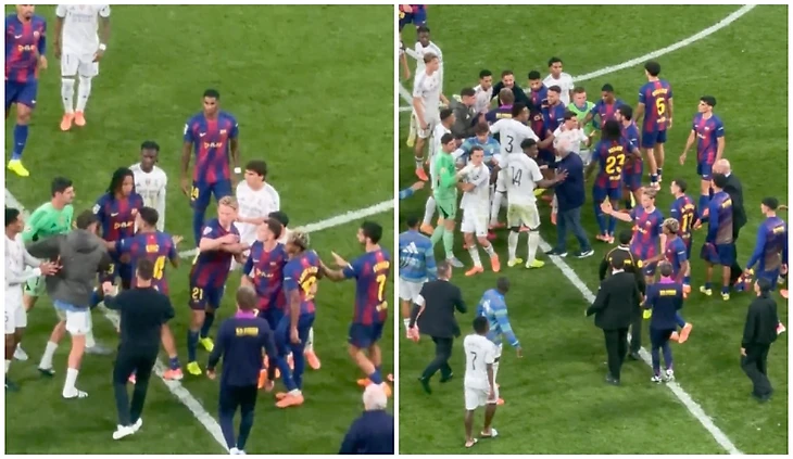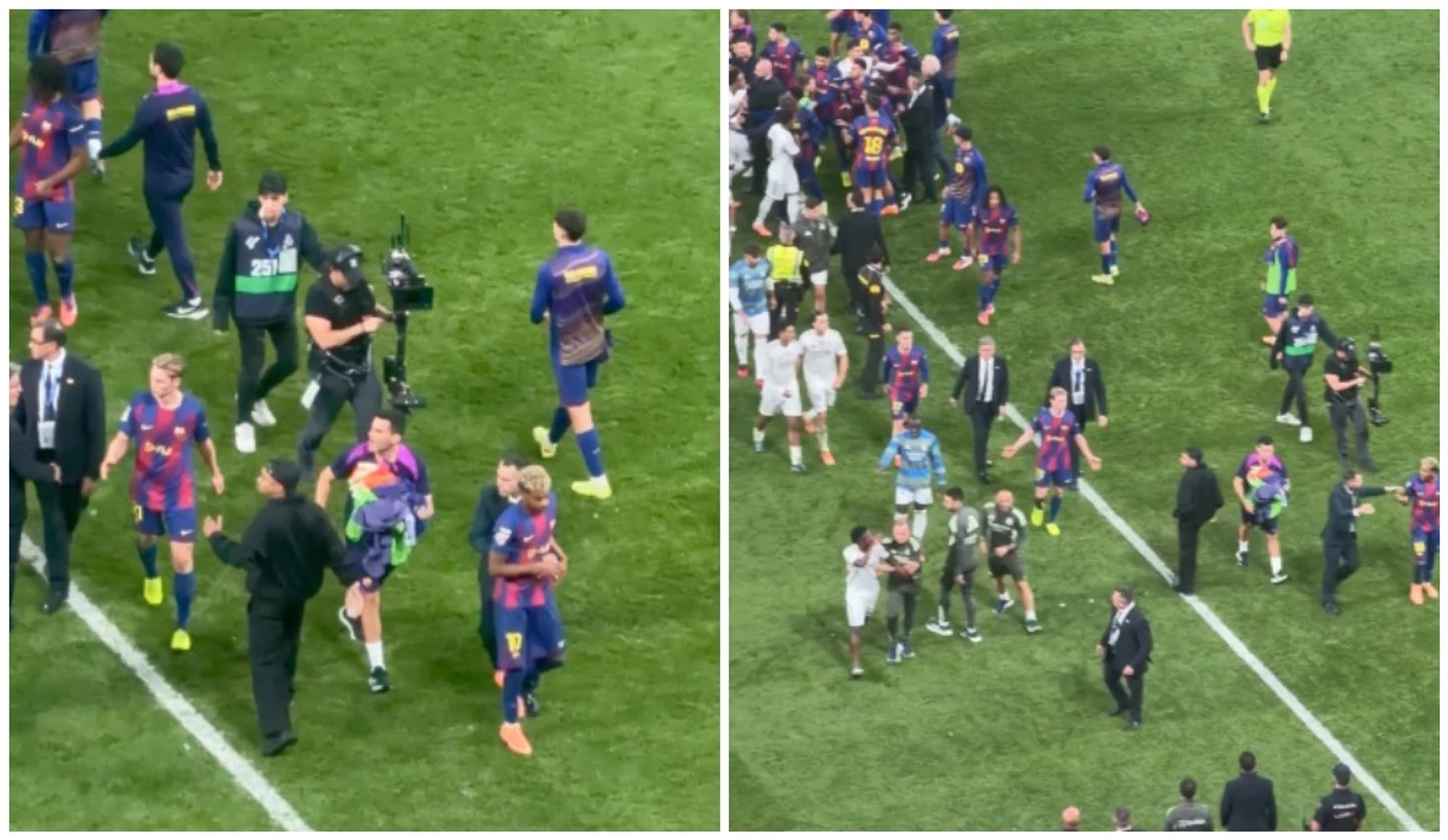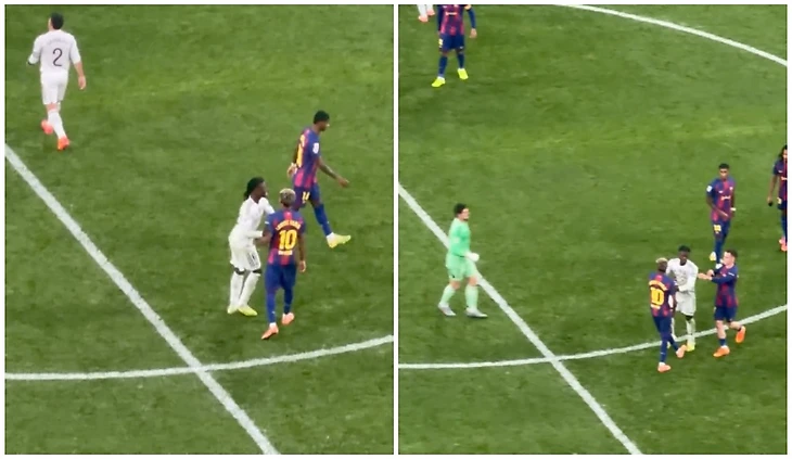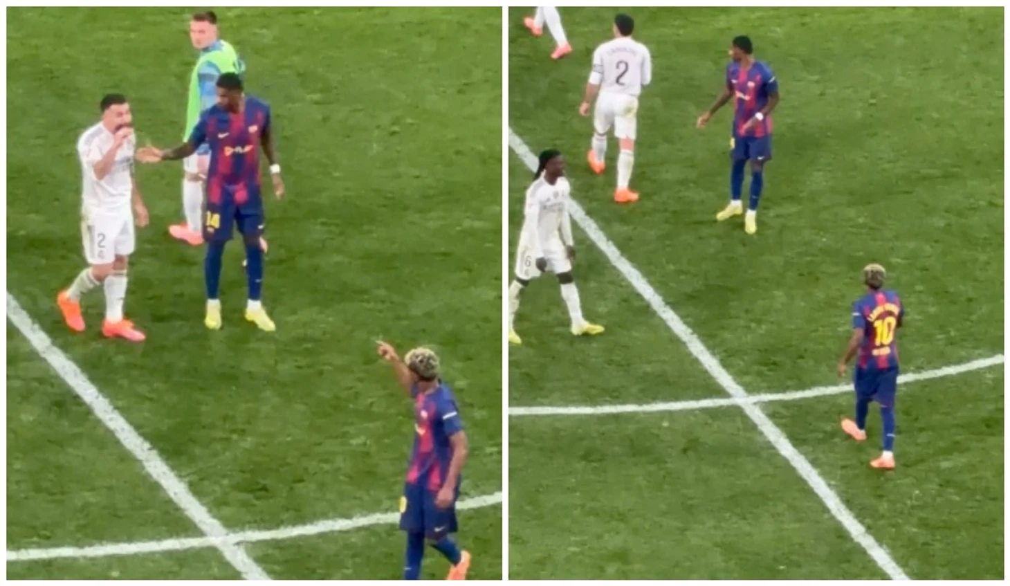 В «общение» Камавинга с Ямалем зачем-то внезапно вмешался Марк Касадо, который посчитал, что его одноклубнику нужна помощь. С этого момента в потасовке стали участвовать практически все игроки, образовалась толпа. Ламин Ямаль оказался чуть в стороне, но продолжал кому-то что-то выговаривать.