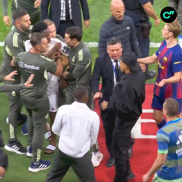 Казалось, что горячего испанца вырвали из рук разъяренных «мадридистов». Но внезапно появился новый персонаж – Винисиус Жуниор. Бразилец явно не высказался и стал что-то кричать Ямалю. По утверждению Marca, он повторял: «Ты много болтаешь, ты много болтаешь».