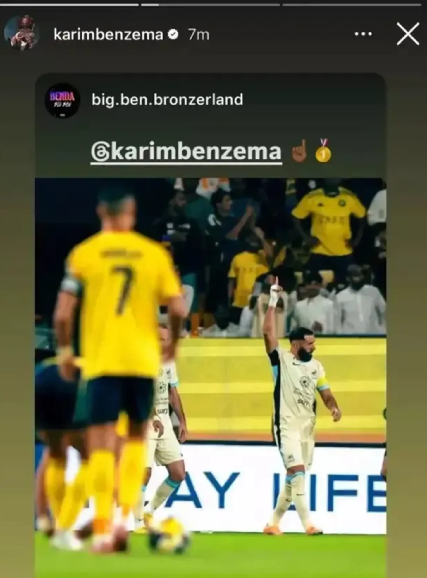 После игры форвард выложил пост в инстаграме с возможным троллингом Роналду, пусть даже это репост с другого аккаунта. На нем Бензема празднует на фоне Криштиану.
