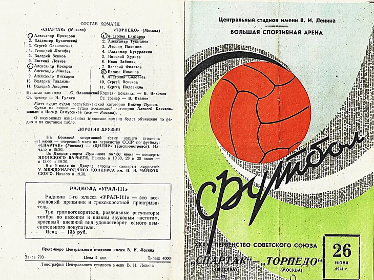 Спартак (Москва) - Торпедо (Москва). 26 июня 1974 года / Первенство Советского Союза