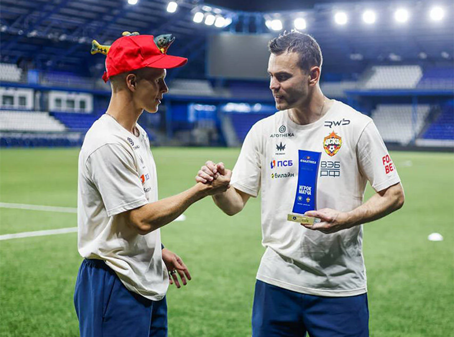 У Игоря Акинфеева в этом сезоне приятная традиция: после каждого матча награждает лучшего игрока или даже сотрудника ЦСКА… рыбокепкой!