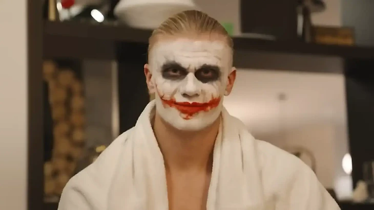 В своем новом видео норвежец полностью перевоплотился в Джокера: фиолетовый костюм, зеленые волосы, жуткий грим — и максимум самоиронии.