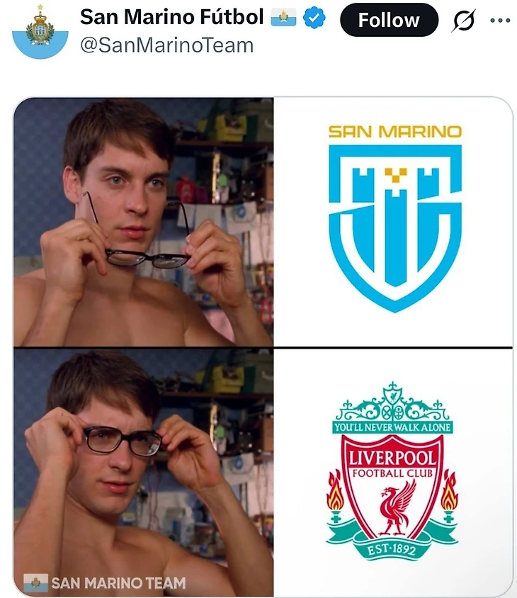 Все смеются над «Ливерпулем» – даже Сан-Марино! Твиттер-аккаунт сборной запостил мем про команду Слота 😐