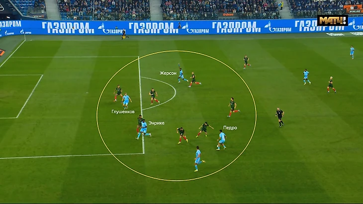 Отсутствие фиксированных нападающих добавляло динамики и непредсказуемости атаке «Зенита»: Педро, Жерсон, Энрике и Глушенков регулярно менялись местами в атаке.