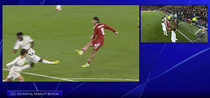 Пояснение: Ковач назначил штрафной за руку. Географически контакт внутри. Если ВАР согласен с фолом, то он просто сообщит главному, что фол внутри — к монитору идти не нужно.