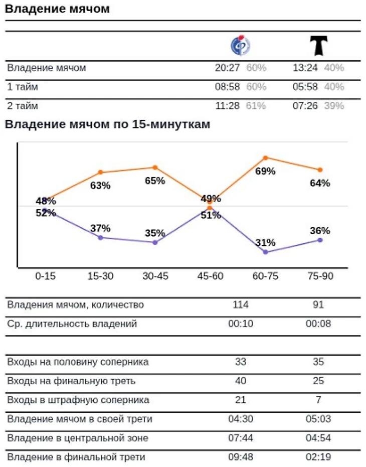 Раз уже упомянул про Шалимова, то стоит указать и еще на один показатель: владение мячом. Средняя длительность владения мячом в финальной трети у «Факела» составляла в этом матче 09:48. Под руководством Шалимова данный показатель порой был в два раза ниже.