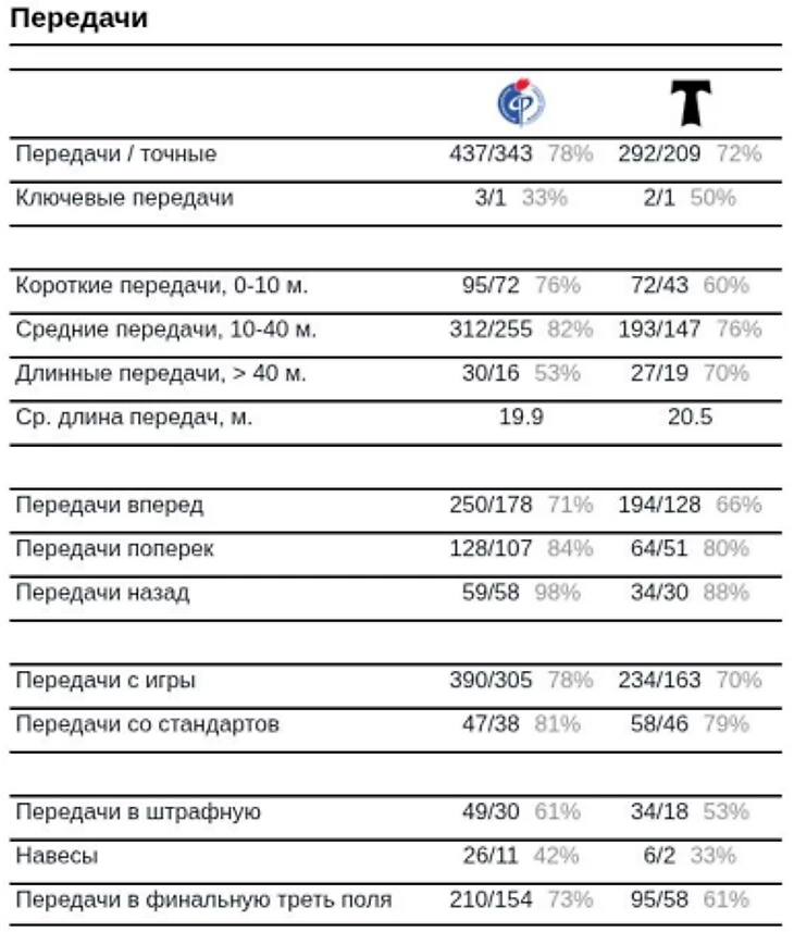 Ну и напоследок по поводу «отскочил». Посмотрите, сколько передач сделал «Факел» (437) и сколько «Торпедо» (292). «Факел» сделал почти в два раза больше передач, 78% из которых были точными. Честно говоря, в прошлом сезоне в РПЛ я вообще не помню такого показателя. Кстати, обратите внимание на точность передач вперед. У «Факела» 71%, в то время как у «Торпедо» 66%. При этом у «Факела» еще 61% точных передач в штрафную и 73% точных передач в финальную треть поля. Про количество в финальную треть я вообще молчу. У «Торпедо» там более чем в два раза меньше. Так что «отскочил» тут точно не подходит. Тут скорее подходит «перебегал», «переиграл», «передавил» и много чего другого, в чем «Факел» на голову превзошел «Торпедо». Как сказал классик: «Не смотрите футбол только эмоциями, смотрите статистику - ваше мнение изменится полностью».