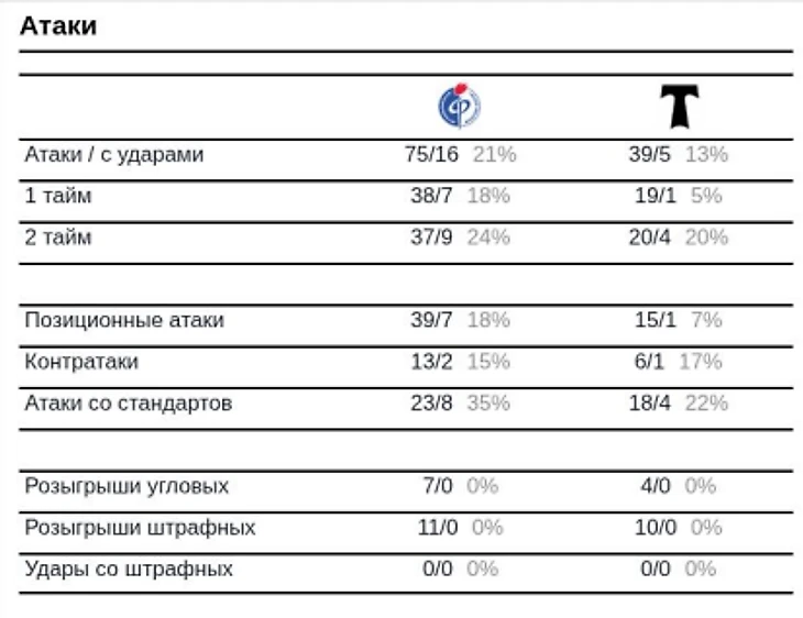 На что еще стоит обязательно обратить внимание, так это на атаки в разбивке по таймам. У «Факела» практически одинаковое количество в первом и втором таймах: 38 и 37 соответственно. А вот «Торпедо» активнее начал атаковать и завершать атаки ударами уже во втором тайме. Это говорит о том, что команда слишком долго «раскачивалась» по ходу игры. «Факел» страдал этим в прошлом сезоне. В итоге вылетел из РПЛ. «Торпедо» скорее всего, вылетит из ФНЛ.