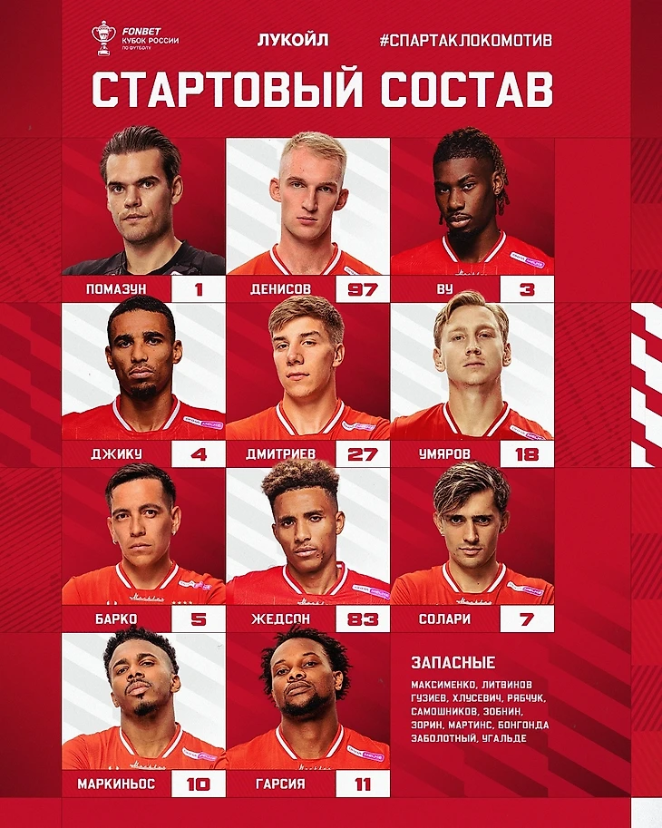 Состав «Спартака» на матч с «Локомотивом»