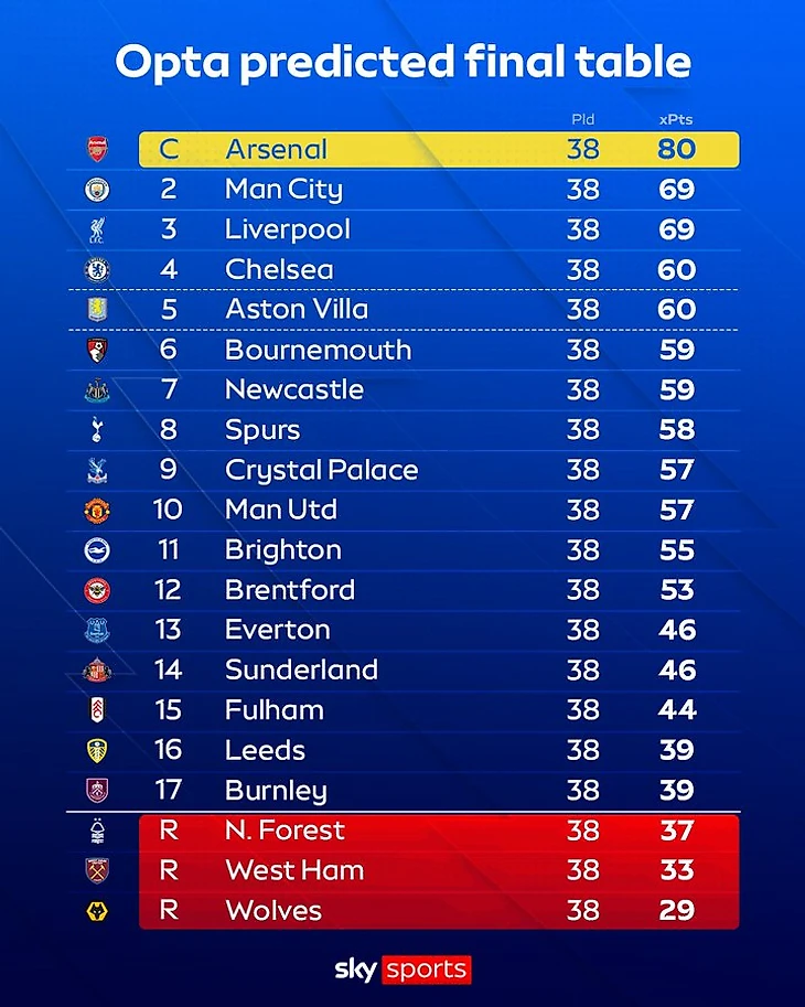 Четверть чемпионата уже позади и определенные выводы напрашиваются. Например, «Арсенал» точно поборется за титул. Более того, «канониры» явные фавориты в чемпионской гонке. Opta прогнозирует лондонцам победу в АПЛ с отрывом в 10-11 очков.
