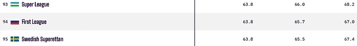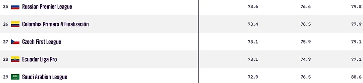 🤪 Рейтинг лиг от Opta: АПЛ лидирует с отрывом, далее Ла Лига и Серия А. РПЛ ниже японской, хорватской и кипрской лиг, но выше Саудовской Аравии 😵
