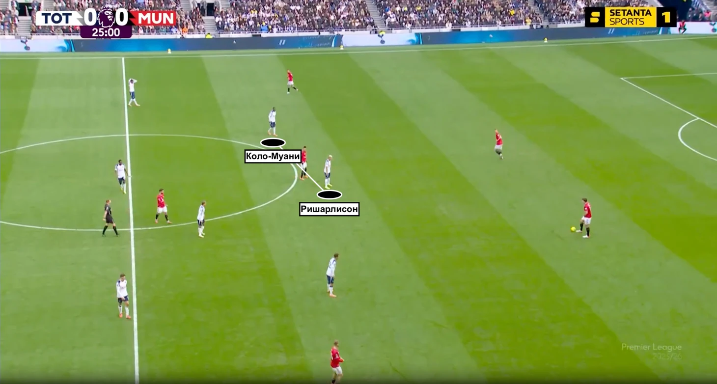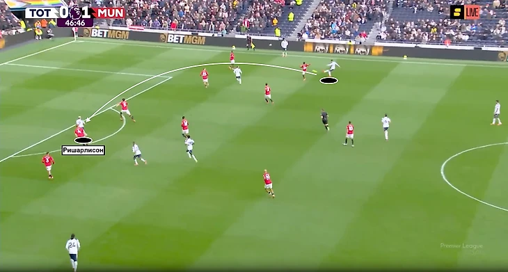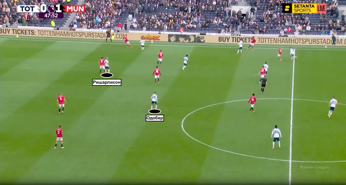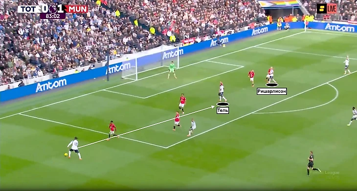 Голевому угловому «Тоттенхэма» предшествовала очередная передача с фланга в центр на Ришарлисона. Бразилец не смог встретиться с мячом, Де Лигт заблокировал прострел, но «шпоры» получили возможность разыграть угловой.
